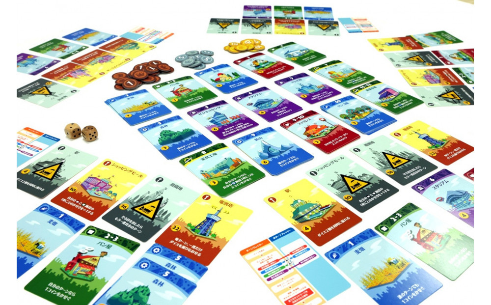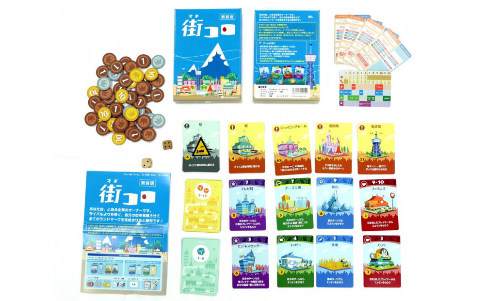 「街コロ」は、自分の街を育てて誰よりも早くランドマークを完成させることを目指すボードゲームです。