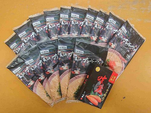 福岡の味が楽しめる豚骨ラーメン15食と、明太子150gをセットにしました。