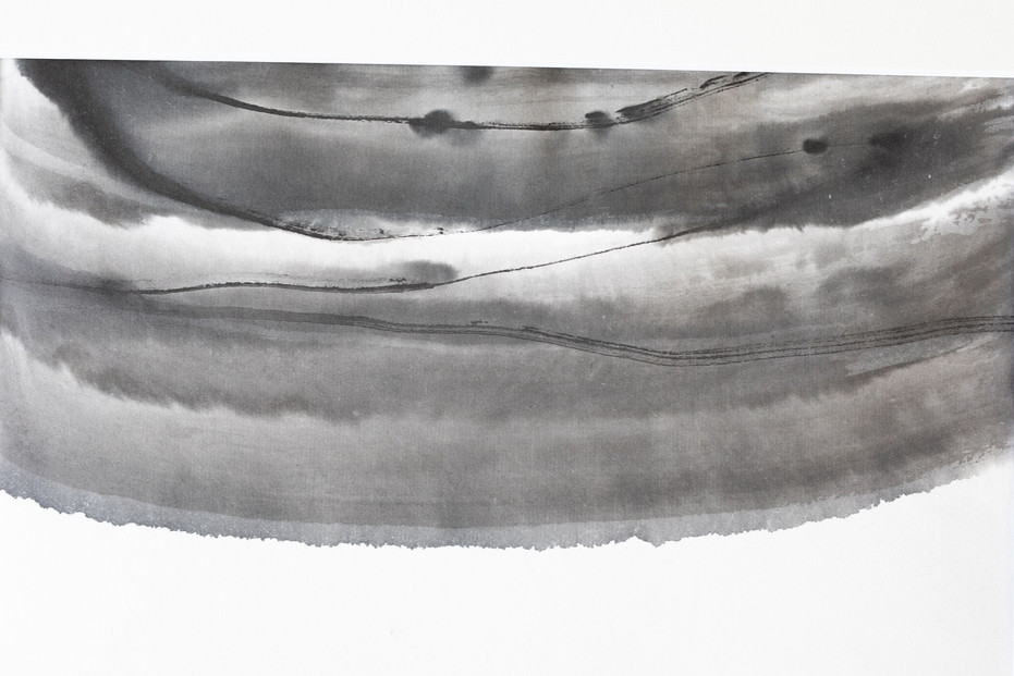 福岡市在住の墨象作家・香心(こうしん)による、「結びゆくものたち」シリーズ第3作目。墨象作品《三魂(さんこん)》の原画です。