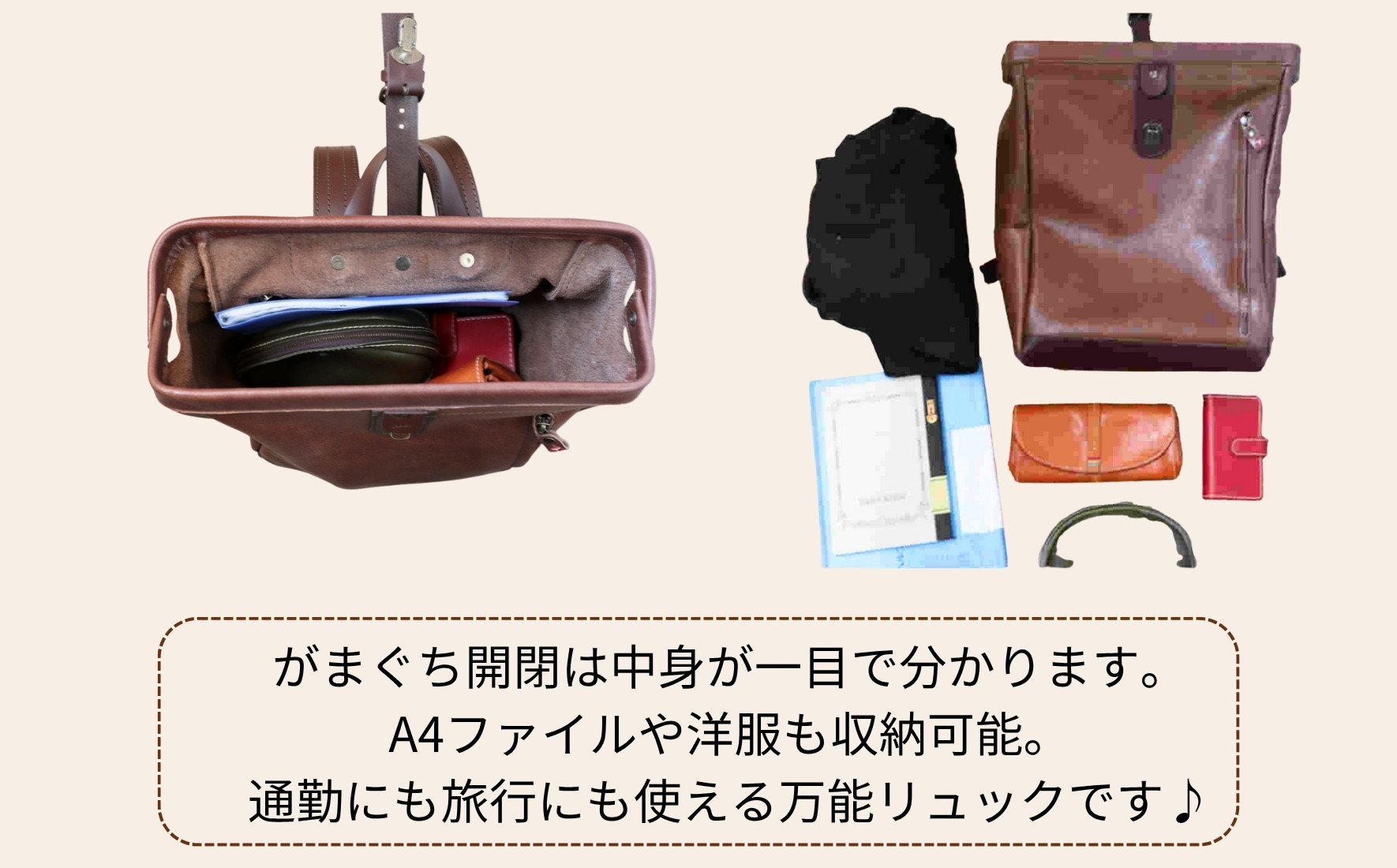 どこへでも自信を持って連れていける「大容量がまぐちリュック」がこちら。