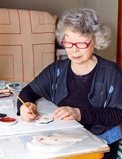 押絵を博多ではおきあげと呼びます。女の子が生まれると新春のお祝いに羽子板を贈るならわしがあります。羽子を突いて災を跳ね除け健やかに育って欲しいとの願いが込められた縁起物です。又、粋で華麗な男物の歌舞伎役者絵の羽子板は商売繁盛、不景気を跳ね飛ばすと言って飾られる縁起物です。博多おきあげのお顔は手描きです。全て丁寧に手作りした伝統工芸品です。インテリアとして1年中飾って楽しんで下さい。