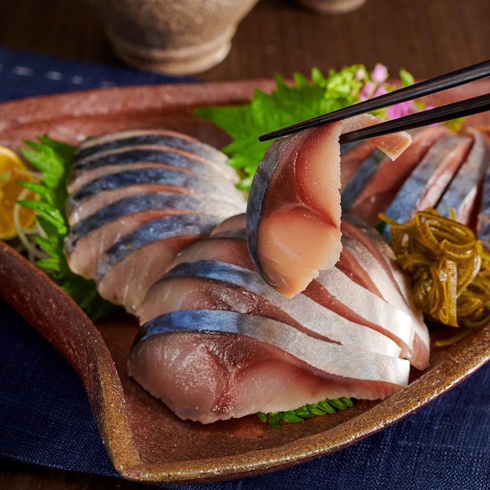 韓国の済州島沖で獲れた良質な脂の真さば、北海道道南産の真昆布、紀州和歌山産の梅干からとれた白梅酢など、素材にとことんこだわった鯵本舗にしかない〆鯖ができました。上質な脂と身質でしっとりとした食感をお楽しみいただけます