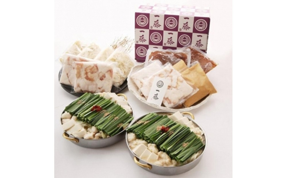 「もつ鍋 一藤」の味噌味とあっさり醤油味のもつ鍋食べ比べセット。テレビショッピングで紹介された大反響のセットです!