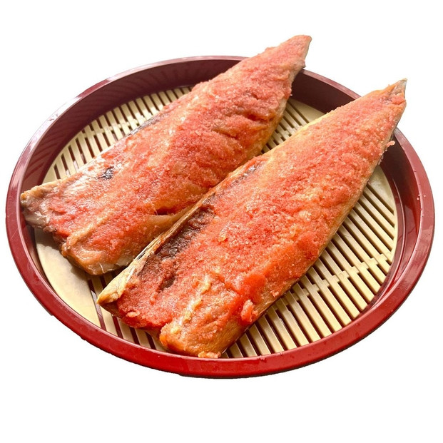 脂がのったさばの半身を特選の明太子だれにじっくり漬けて味付け、身の上には辛子明太子をまぶしました。上質の辛子明太子とさばの旨味が絶妙に合わさった博多ならではの一品。