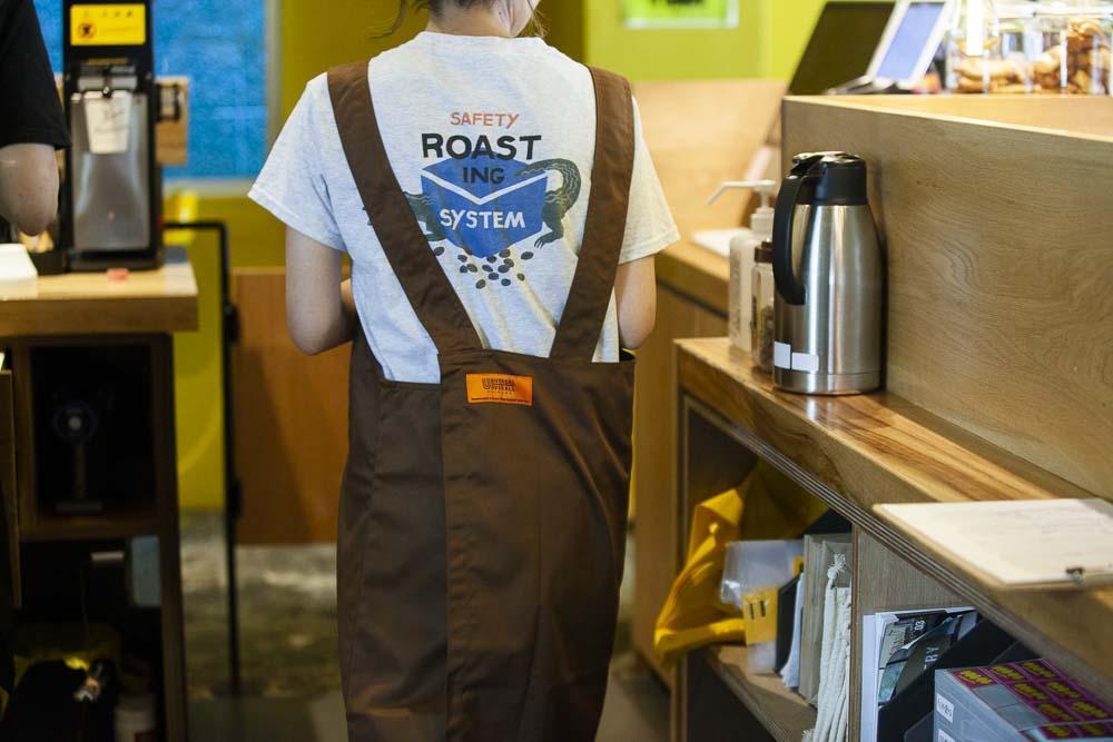 市内工程:エプロンの仕入れ、オリジナルデザイン印刷、梱包、発送