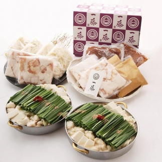 「もつ鍋 一藤」の味噌味とあっさり醤油味のもつ鍋食べ比べセット。テレビショッピングで紹介された大反響のセットです!