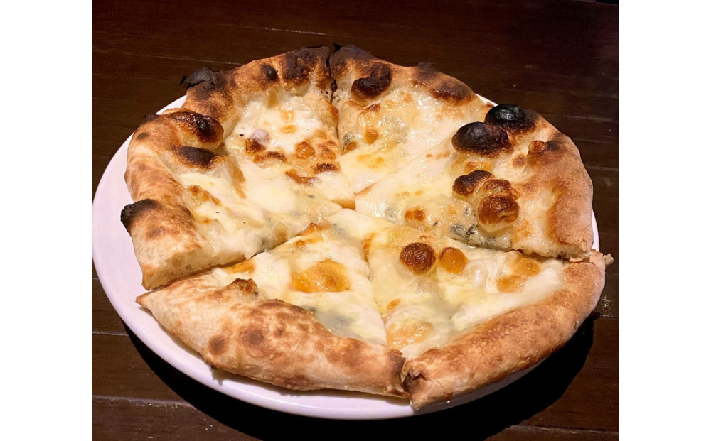 *ピッツァ クアトロ:モッツァレラ、ゴルゴンゾーラ、チェダー、ナチュラルチーズの4種類のチーズたっぷり使用。