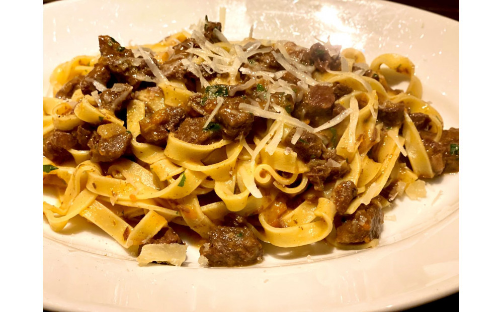 *ペポーゾ(牛すね肉の赤ワインと黒胡椒煮):ブラックペッパーと赤ワインでじっくり煮込んだトスカーナの郷土料理