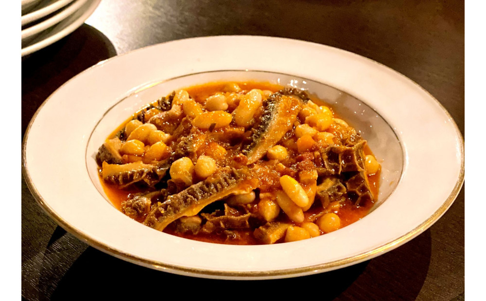 *自家製ローマ風トリッパ(トリッパ・アッラ・ロマーナ):牛のハチノスを丁寧に下処理し、トマトやハーブでじっくり煮込んだローマ風の一品です。