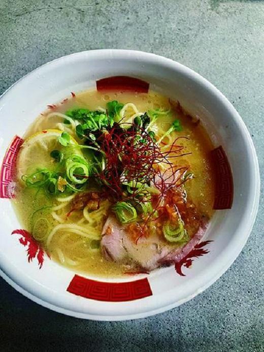 九州産の新鮮な朝引きの鶏がらと廃鶏(卵を産み終えた親鶏)を、博多の水炊きのように、白濁するまで約2日間煮詰めた鶏白湯スープ。