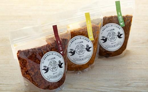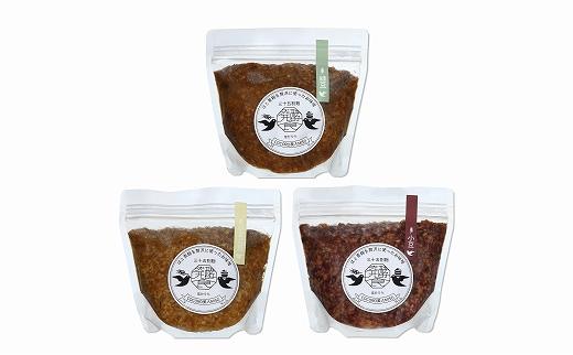 日本人の健康を支えてきた発酵食品の薬膳味噌。忙しい朝でも毎日飲み続けることができるように出汁が無くてもお湯で溶くだけで美味しく飲めるように工夫しています。はと麦麹をたっぷり配合することにより美容促進効果があります。お塩は一般の約1/3の塩分5%の配合割合にしていますので減塩されてる方もご心配なく使って頂けます。通常の大豆と違いビタミンCビタミンEを多く含む緑豆、葉酸が豊富なひよこ豆は貧血予防の効果がありとっても甘くて美味しいと人気のあるお味噌です。医薬品と言われていたほどの薬効効果のある小豆味噌は抗酸化物質を多く含む食品1位と言われアンチエイジングには外せない女性には嬉しいお味噌です。この3点セットのお味噌を是非ご賞味ください。