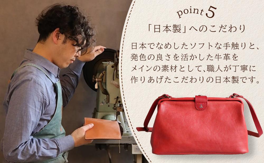 国内製のコンビ鞣し牛革を使用し、ソフトながら程よい厚みと頑丈さを兼ね備えています。