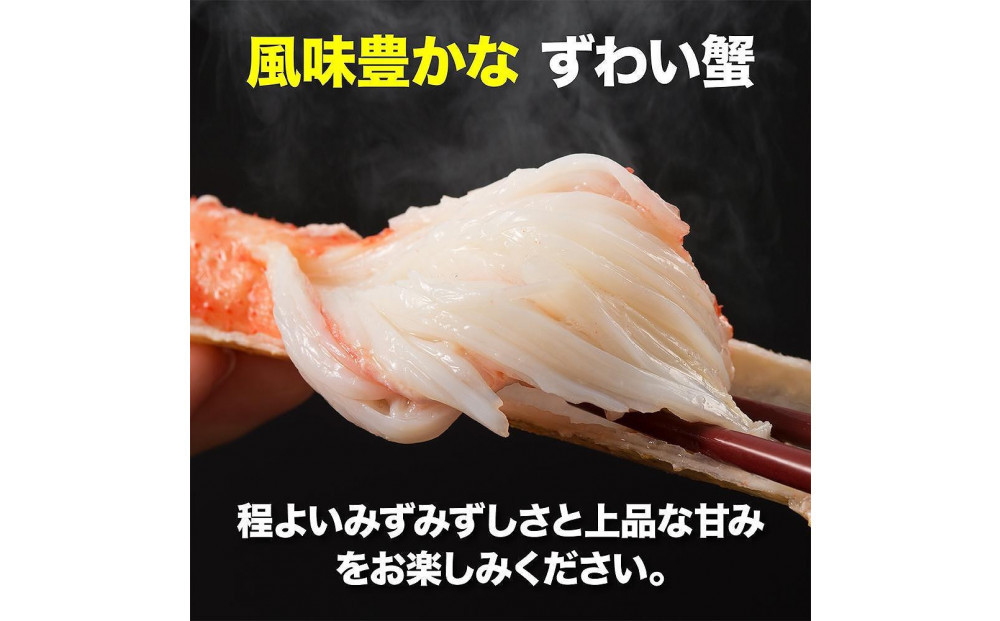 太脚の他には爪下や南蛮(脚の先の部分)、肩肉が入っています。※ズワイガニはロットによって「爪有り」と「爪無し」がございます。(選択不可) お子様やお年寄りでも食べやすいように、脚は殻を半分剥いたハーフポーションに。脚以外の部分も切れ目を入れたり、半分にカットをしております。