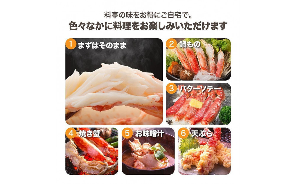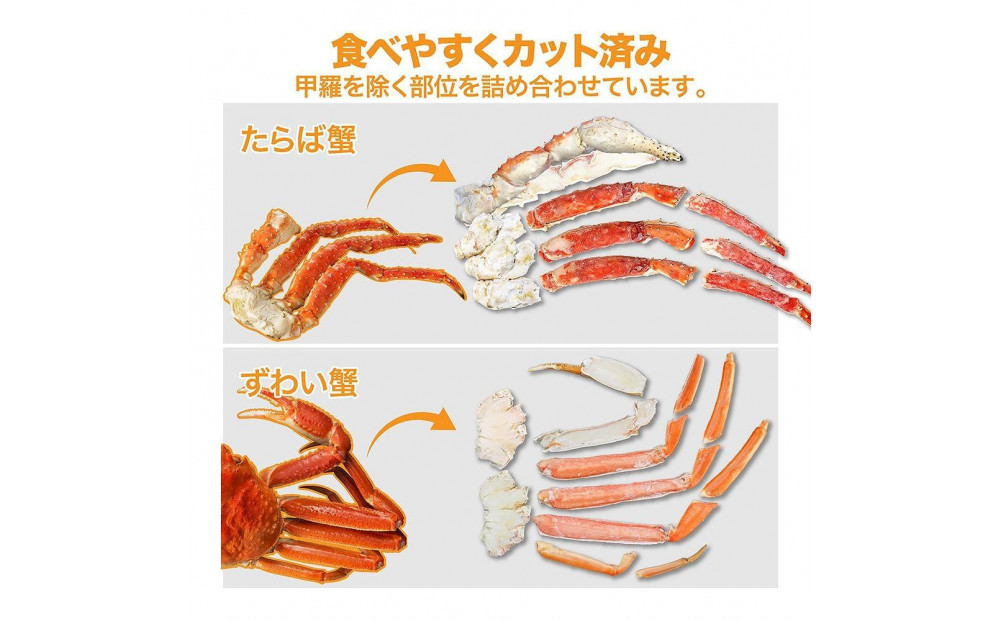 カット済み&ボイル済みなので、解凍後すぐに食べられる!調理不要でギフトでも喜ばれております。もちろんカニ鍋や焼きガニでもお楽しみいただけます。
