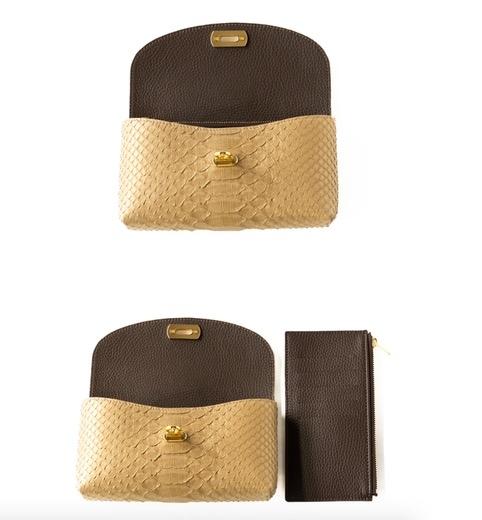 パイソン独特のエキゾチック感のある鱗模様を活かした、深みのあるアンティークゴールドのカラー。