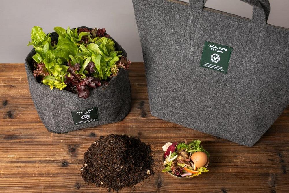 ローカルフードサイクリング株式会社では、「都会で捨てない暮らし」の実現を目指し、おしゃれなトートバック型のコンポストを開発。分解を早め、悪臭を抑える独自配合の基材とともにお送りします。