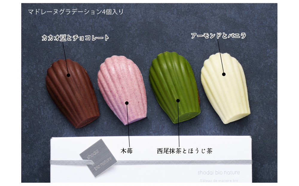 shodai bio natureならではの感性から生まれた、色彩豊かなマドレーヌグラデーション。