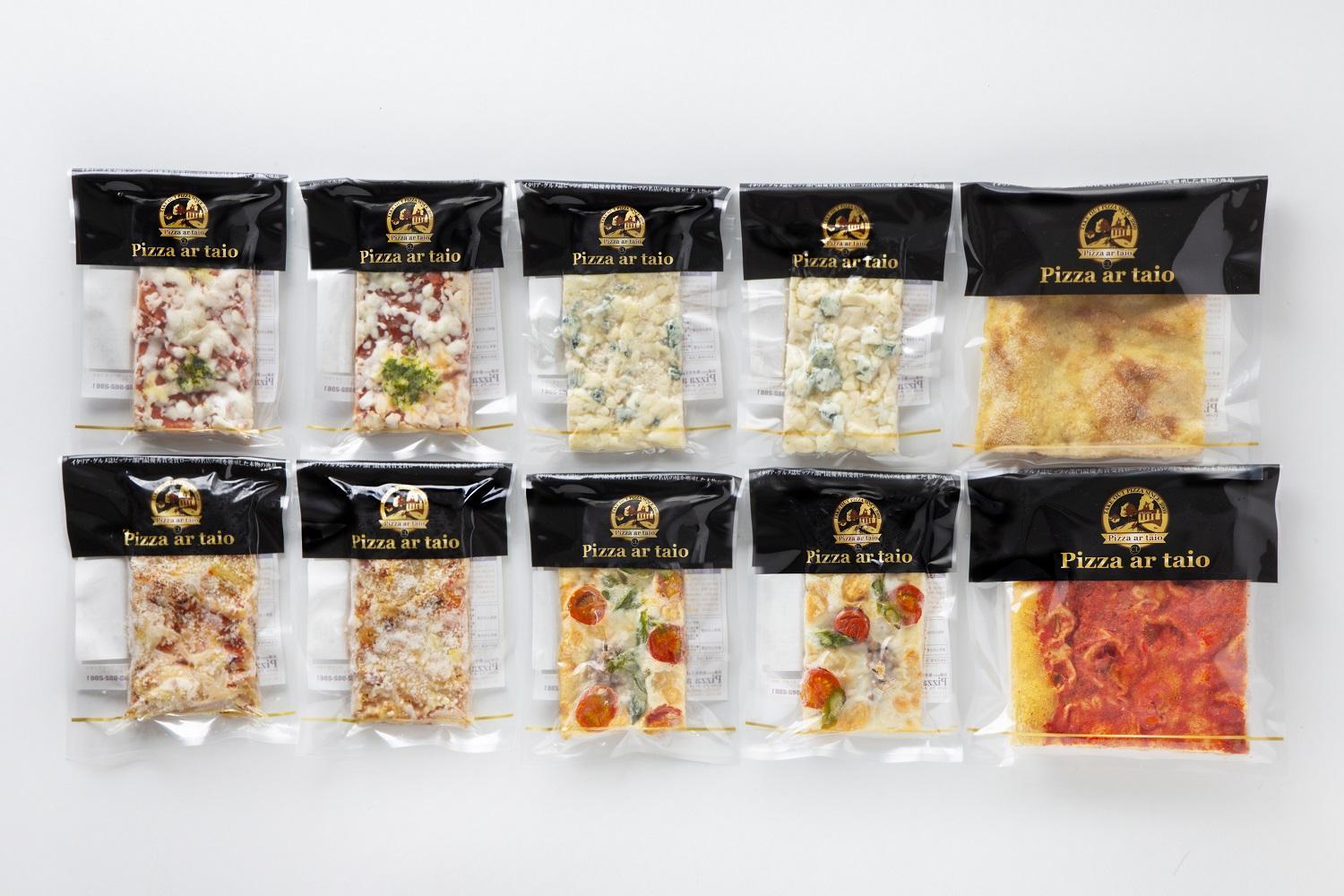 ローマで修行したシェフが、ローマの四角いピッツァを日本に広めたいと始めた「ピッツァアルターイオ」。アルターイオのピッツァはまず生地が美味しい。底はパリッ、中はモチッ。そこに色とりどりの具材がのり、見た目も華やか。解凍してトースターやフライパンで温めたら、焼きたて同様の食感です。小腹がすいたとき、カットしてみんなでシェアなど、様々なシーンで楽しんでいただけます。