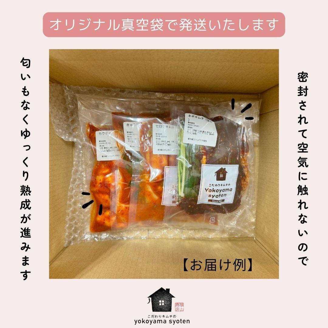 白菜キムチ200gカクテキ200gきゅうりキムチ200g白菜水キムチ300g合計900g入り!