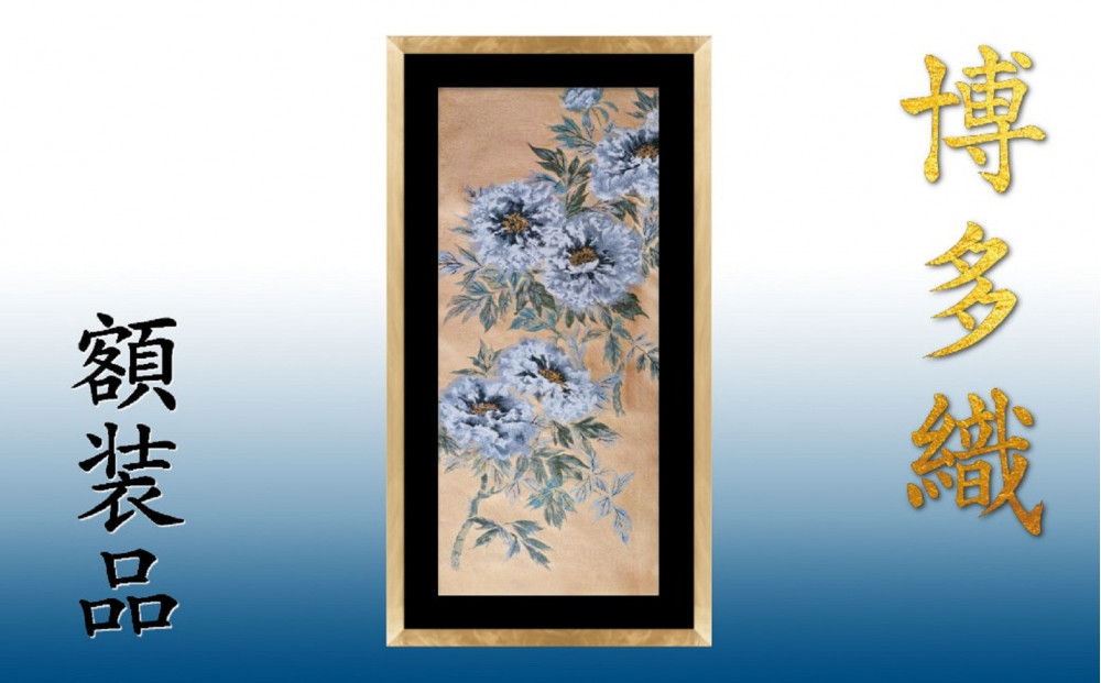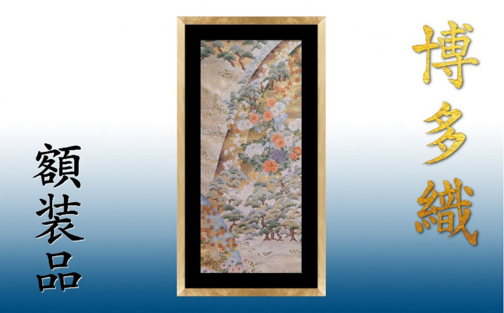 本場筑前博多織の帯地をそのまま使用した博多織の額装です。筑前織物が誇る博多織の繊細な柄や色彩を、インテリアとして飾れるよう額装に仕立てました。和室はもちろん、洋室にも調和するデザインで、お部屋のアクセントとしてお楽しみいただけます。