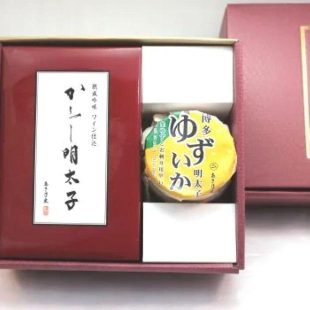 ワイン仕込からし明太子と爽やかな風味のゆずいか明太子のセットです。