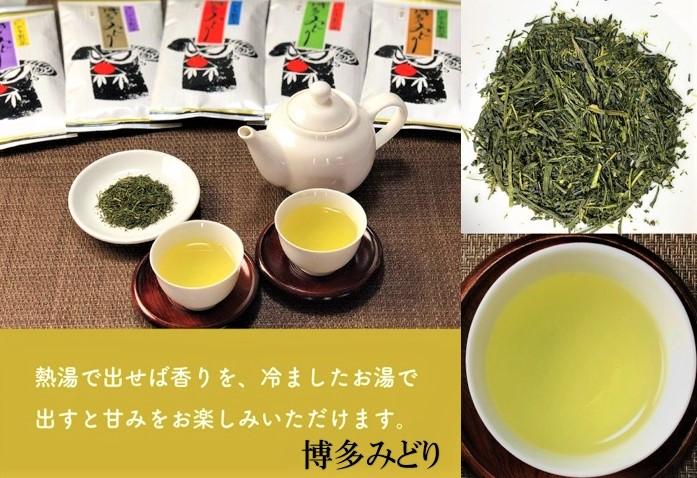 【博多みどり】は、香り高い煎茶とまろやかな煎茶と玉露をブレンドした、当社オリジナルの商品です。