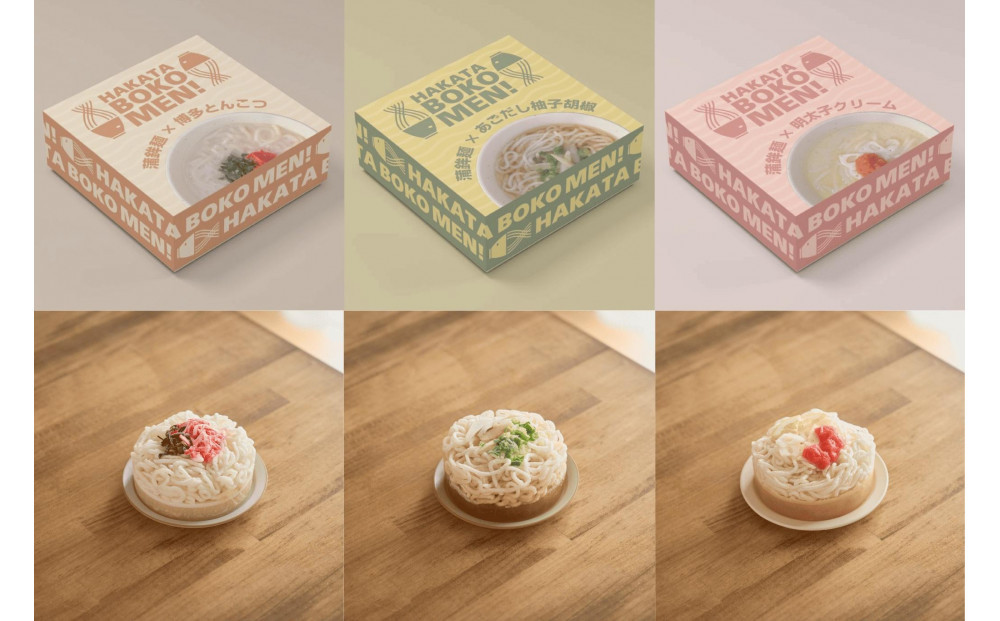 博多らしい、とんこつ・あごだし柚子胡椒・明太子クリームの3種のスープです。