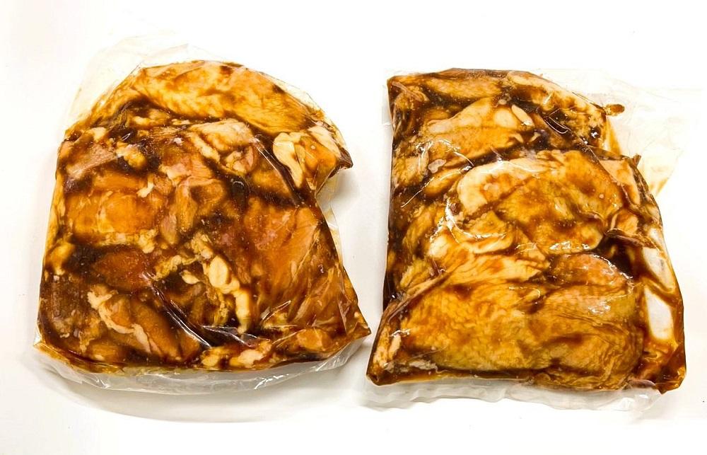 鶏のモモ肉を柔らかくジューシーにするように開発した特製の照り焼きのたれに漬け込んだ照り焼きチキンセットです。