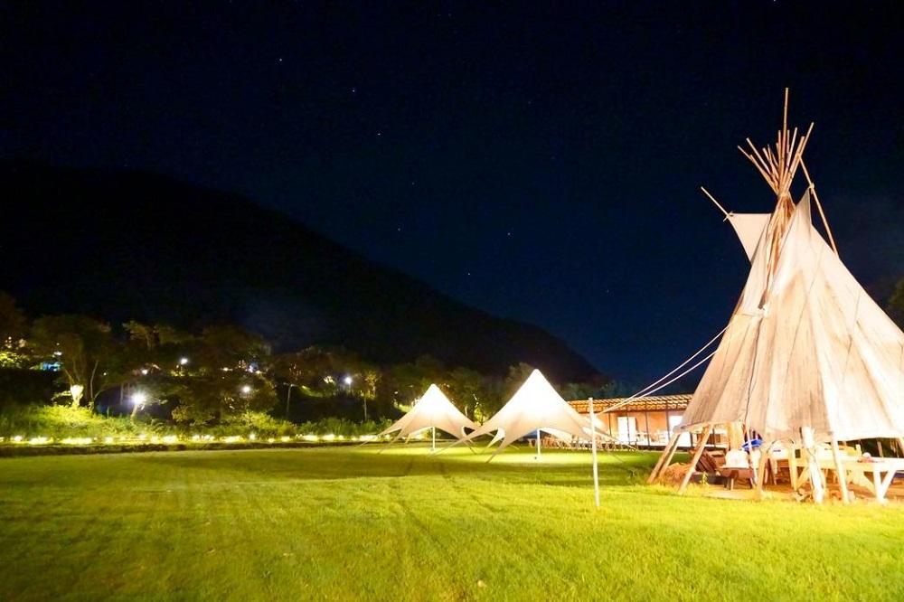 自分たちが泊まるテントを張るところから楽しめます。