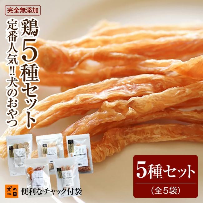 犬の一日で人気の鶏を使ったおやつを集めました。小さいコでも食べやすいサイズのスティック、クッキーなどを揃えた嬉しい5種セットです。
