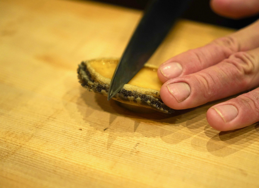硬すぎず、あわびの食感を失うほどには柔らかすぎずの火入れを行い、