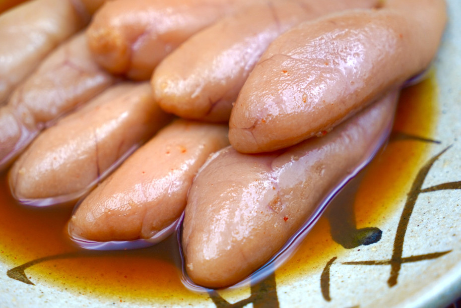 福岡の地酒、韓国産唐辛子、熊本の赤酒など天然の調味料にこだわり、大粒のたらこを漬け込みました。