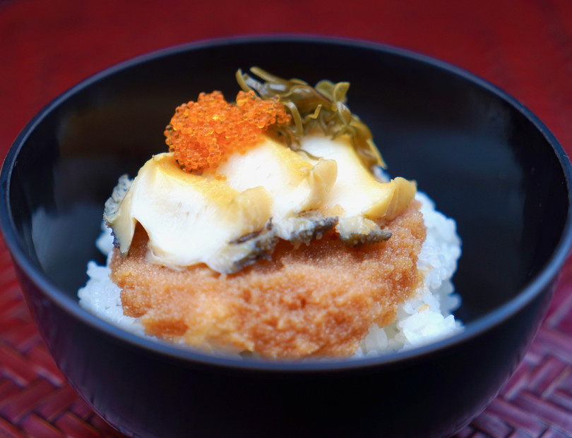粒立ちのよい明太子と旨味溢れる鮑、食感のアクセントにとびこを添えて