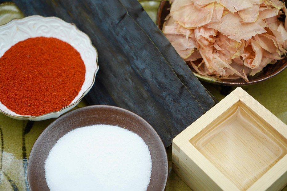 明太子は、北海道産の利尻昆布、枕崎産本枯れ節の鰹節、五島列島の塩、