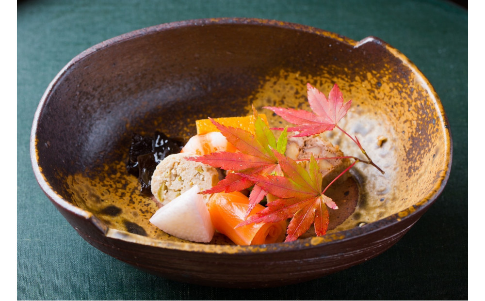福岡市のミシュラン一つ星懐石料理店、味竹林の夜のコースをお楽しみいただきます。