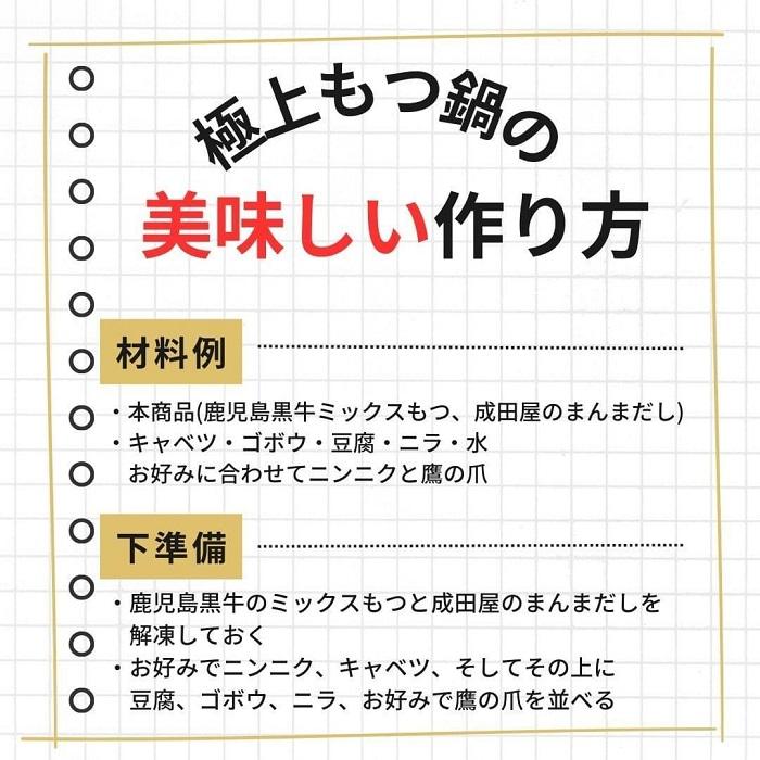 当店が誇る【成田屋のまんまだし】と【チャンピオン黒毛和牛鹿児島黒牛のミックスもつ】がセットになった贅沢な詰め合わせです。