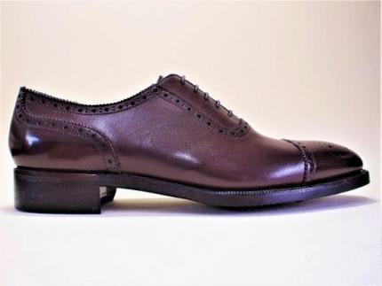 アイレットのまわりに扇型の切り返しがあるデザインをアデレイドといいます。セミスクエアのラストとの相性もよくスマートで洗練されたモデルとなっています。踵はドックテイルから日本伝統のバックステイに変更し、さらに強度を上げています。