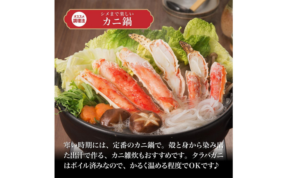 カット済み&ボイル済みなので、解凍後すぐに食べられる!調理不要でギフトでも喜ばれております。もちろんカニ鍋や焼きガニでもお楽しみいただけます。