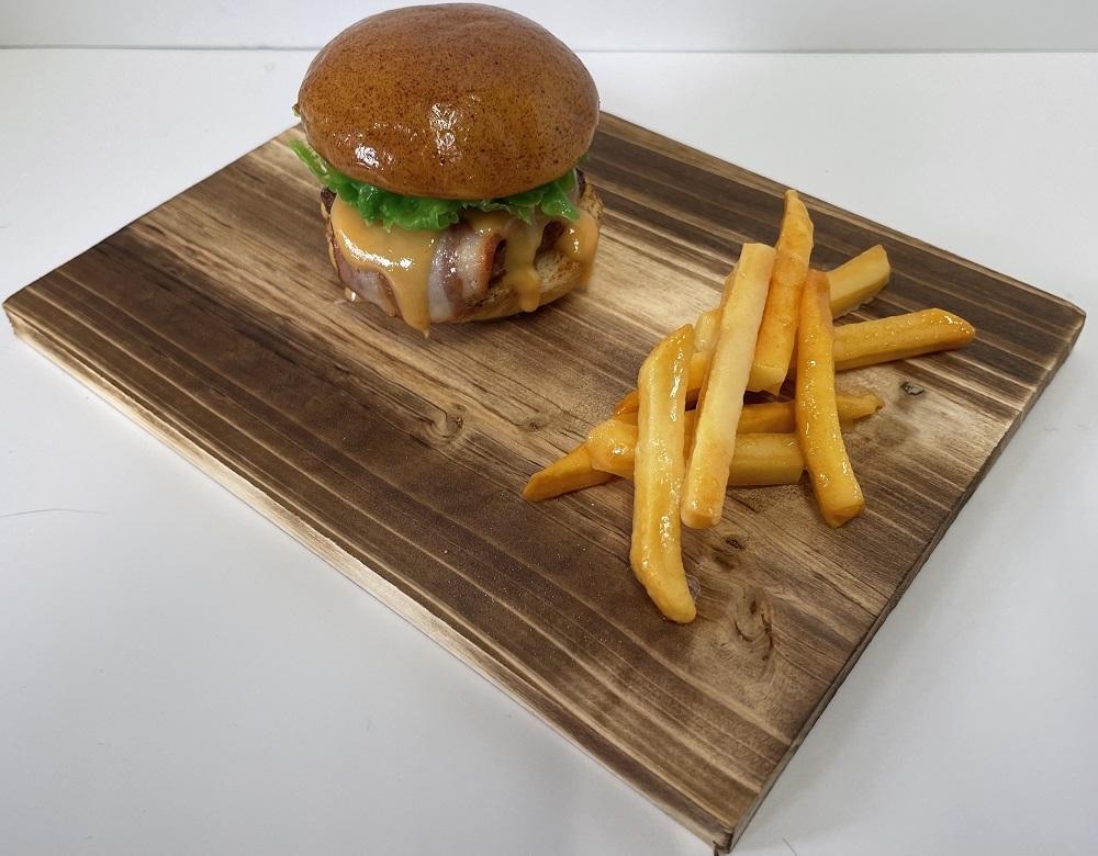 博多和牛で型どったパティで作ったハンバーガーの食品サンプルです。