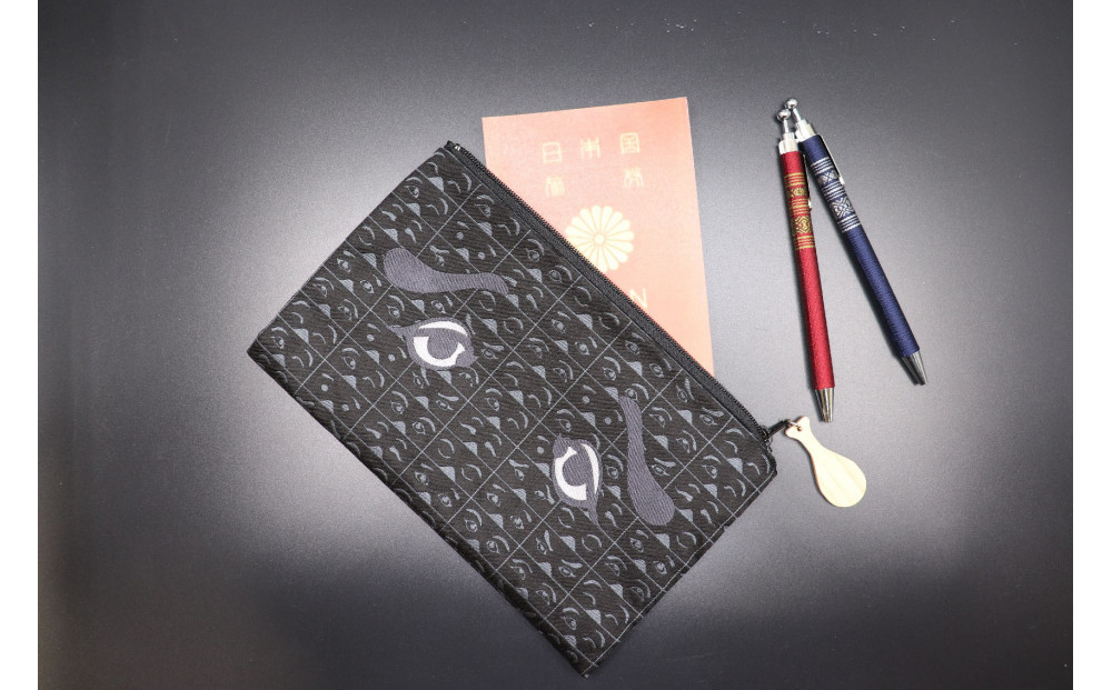 にわか面の様々な表情を地模様にあしらい、ファスナースライダーには木製のチャームを取り付け より博多らしさを表現しています。 開けやすく便利にお使いいただけるポーチです。 事業者名:株式会社サヌイ織物 連絡先 :092-883-7077 関連キーワード:雑貨 小物 アクセサリー ポーチ