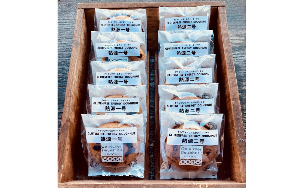 ヴィーガン&グルテンフリータイプの焼きドーナツ(2種類)の10個セットになります。