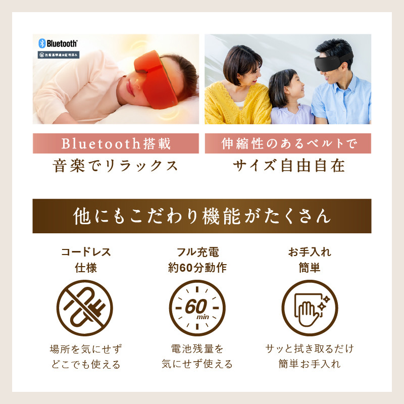 Bluetoothに接続すれば目元ケアしながら音楽を楽しめる