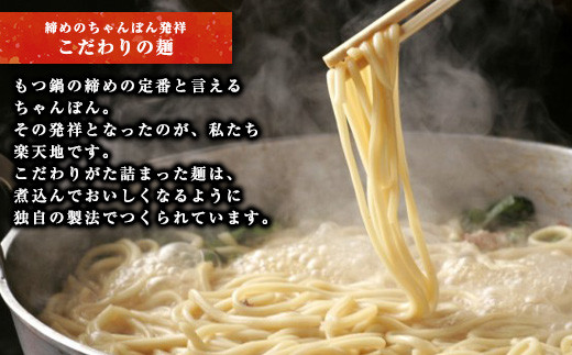 現在は本場博多で15店舗展開し、1,077万人のお客様に召し上がって頂きました。店舗と同じ食材を加工し、モツもさばいたその日に瞬間冷凍をしている為、鮮度落とさずお客様に提供ができます。お店と同じちゃんぽん麺入りでボリューム満点!