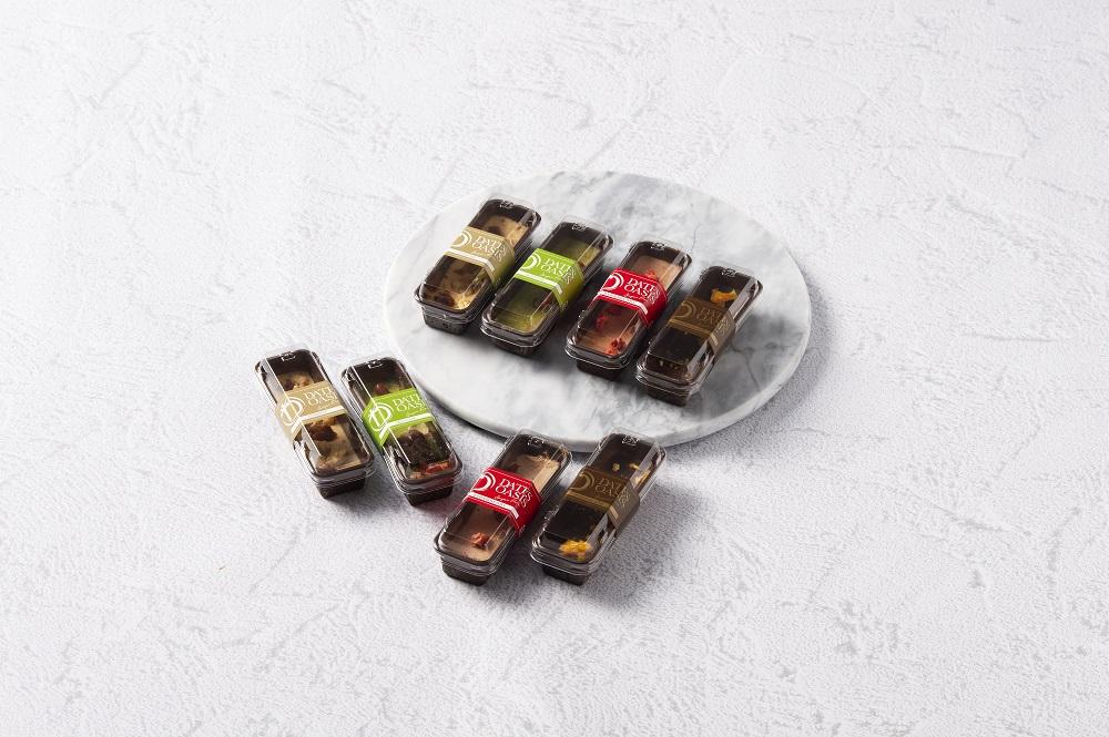 定番のチーズケーキとチョコレートケーキにイチゴと抹茶が加わった、食べやすいスティックタイプの8本セットです。
