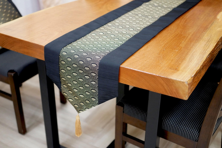 テーブルのサイドから三角の房が垂れ下がるように飾っても、また壁面アートのタペストリーとしても映えるデザインです。